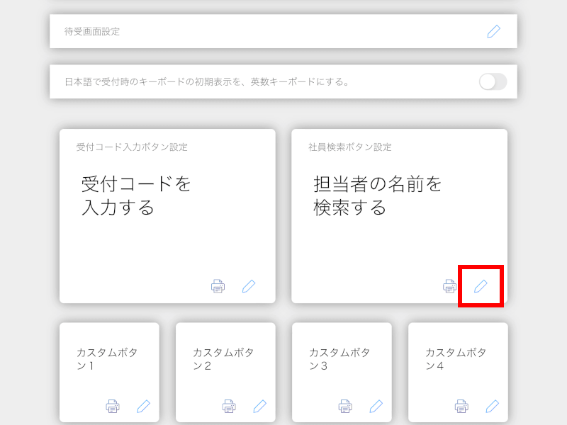 受付画面に戻って、「担当者の名前を検索する」を表示すると、右上に検索ボタンが表示されています。