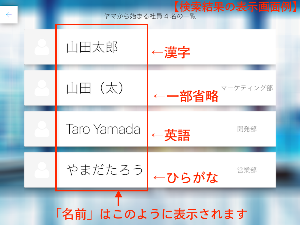 名字を入力してください。来訪者がアルファベットで社員検索するための情報です。 |