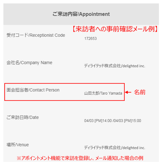 - 受付システムをご利用の場合:【[RECEPTIONIST]受付システム利用登録のご案内】