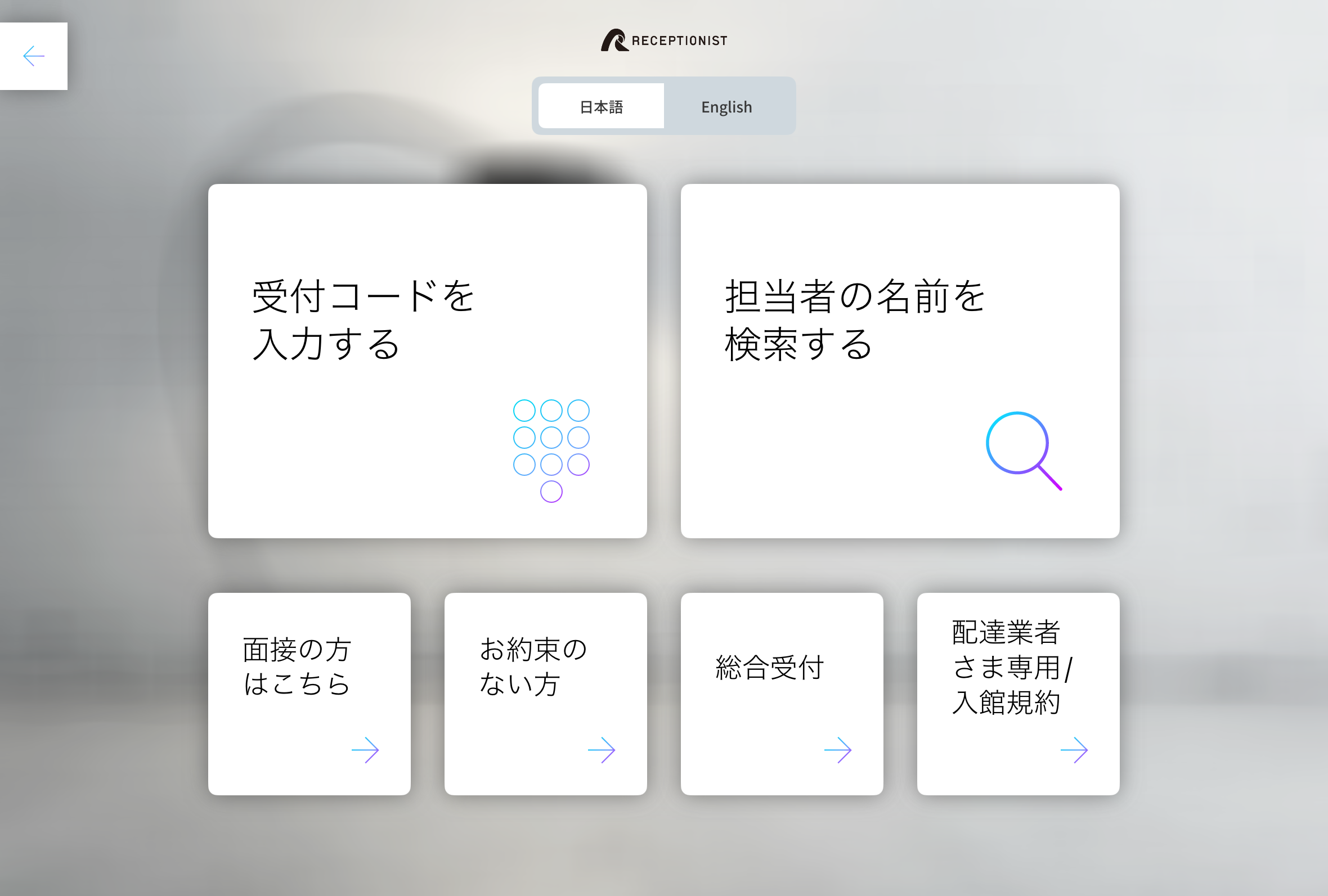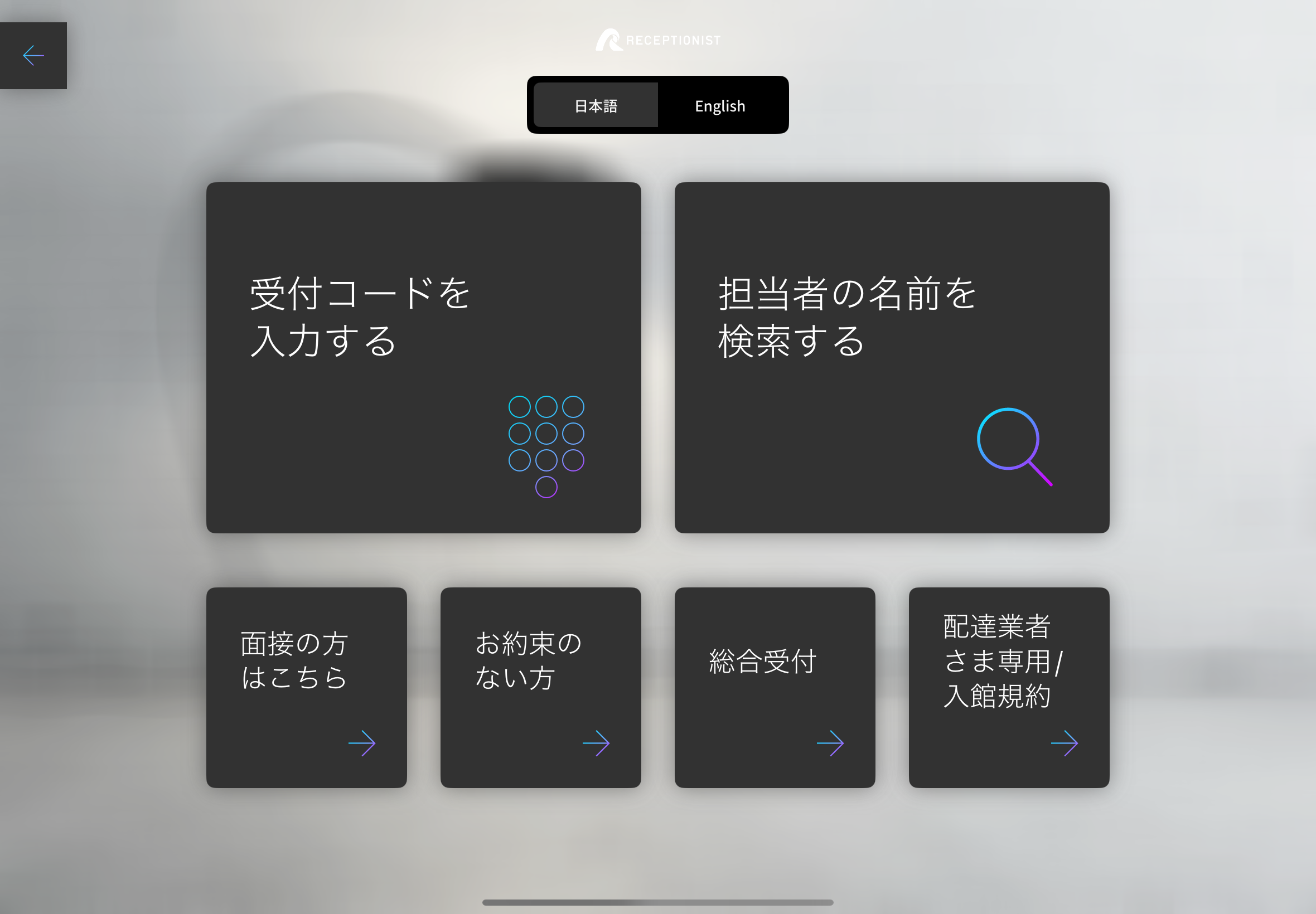 iPadアプリに表示する受付画面の設定を行います。RECEPTIONIST管理画面「受付アプリ設定」から以下ご希望に合わせて設定してください。