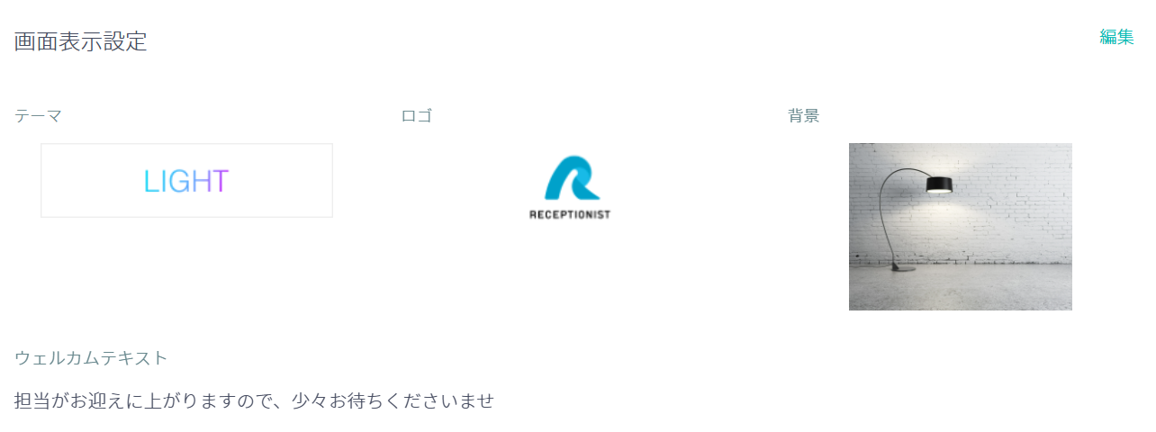 「受付アプリ設定」の画面で「編集」をクリックし、設定してください。