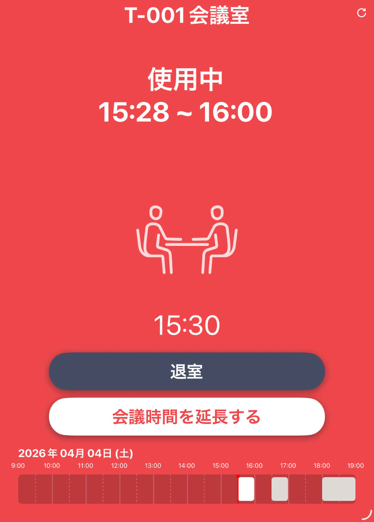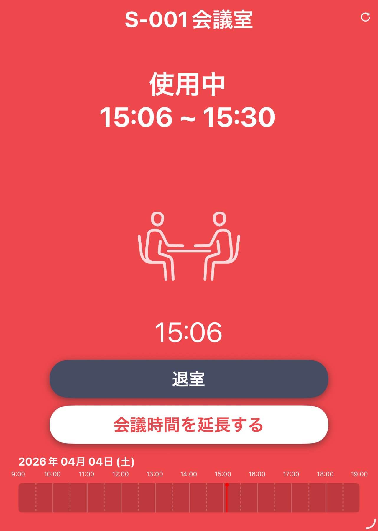 予約ルームズのアプリでは会議室の入室・退室・延長などの操作を行うことができます。