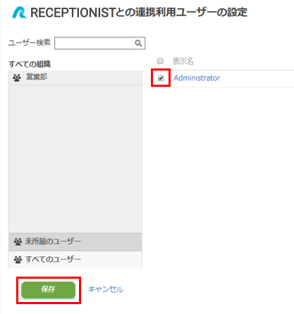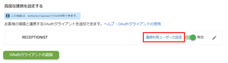 追加したRECEPTIONISTクライアントの「連携利用ユーザーの設定」をクリックします。