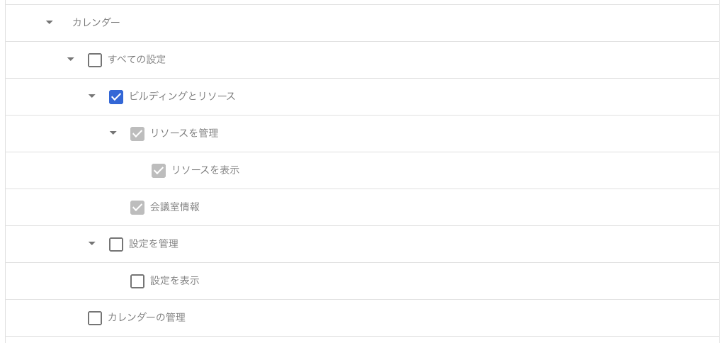 会議室連携用カウントに、Google特権管理者の権限付与が難しい場合は、以下手順で、会議室連携用カウントに以下権限の付与をお願いいたします。