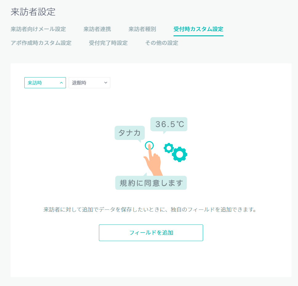 来訪時に、来訪者に入力いただく項目を追加できます。