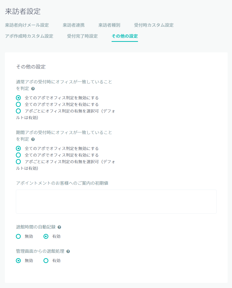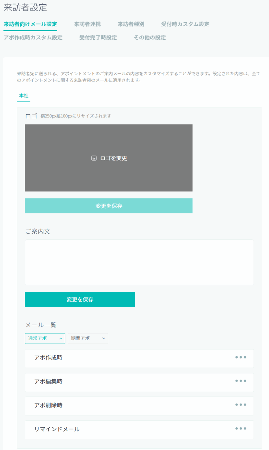 来訪者向けメールの「お客様へのご案内」の初期値を設定できます。