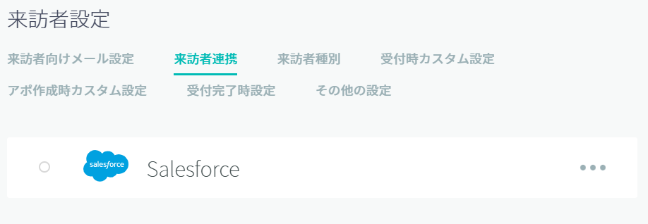 Salesforceとの連携ができます。受付のアポ作成時の来訪者情報の取得、調整アポの予約確定時の情報連携が可能です。