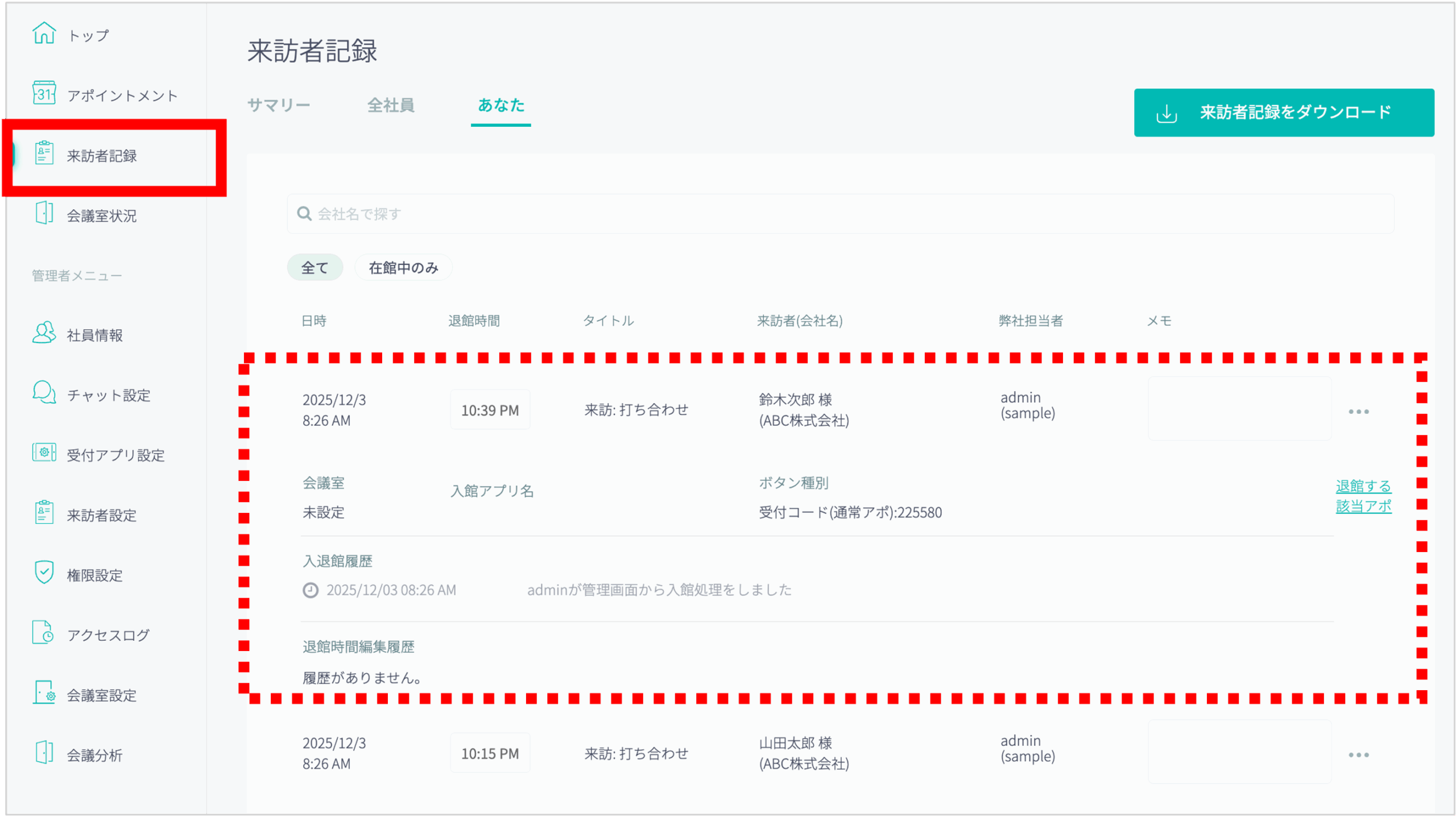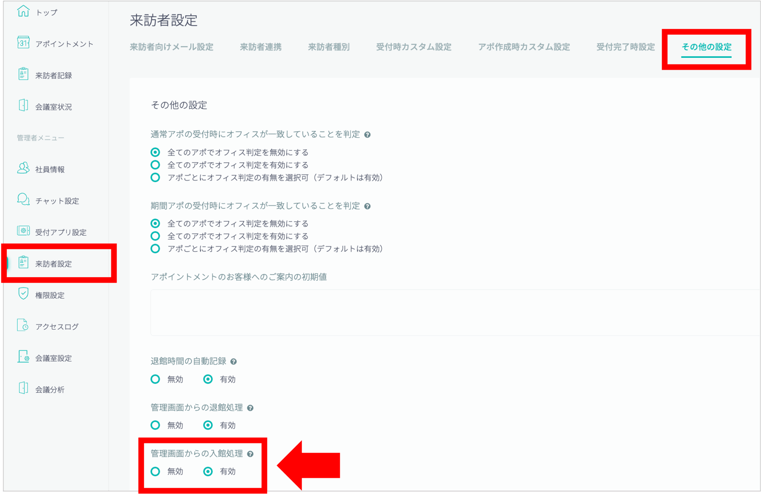 アポイントメントに紐づく来訪者が全て受付済の場合、管理画面から受付ができません。