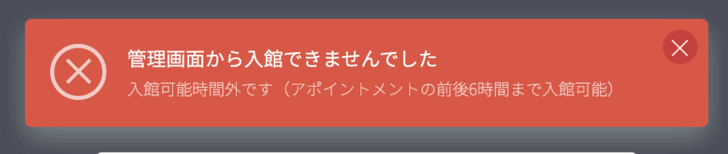 アポイントメントの有効期間外の場合は受付操作ができません。