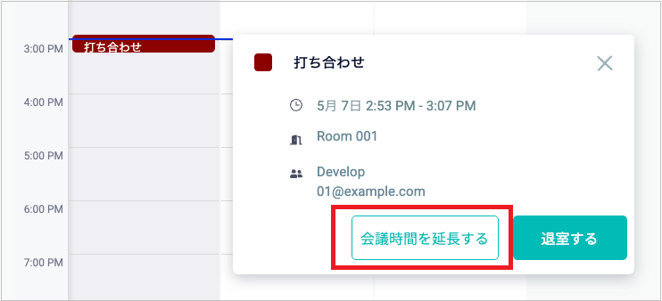 [2025/07/01] 予約ルームズ:PCのWEB画面から会議時間が延長できるようになりました。